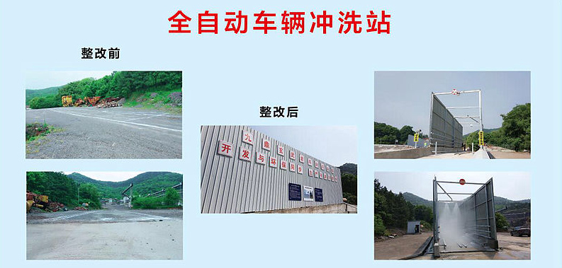 现已建成全自动车辆冲洗站一座,该冲洗站由洗车站、沉淀池、清水池、水泵、智能化控制系统组成。车辆经过冲洗站时自动感应,对运输车辆顶盖、两侧、轮胎等全面冲洗,确保车辆不带泥带灰上路。冲洗后的污水通过截水沟流进沉淀池,通过沉淀池沉淀后,汇入清水池再次供冲洗站使用,实现了水资源的循环再利用。